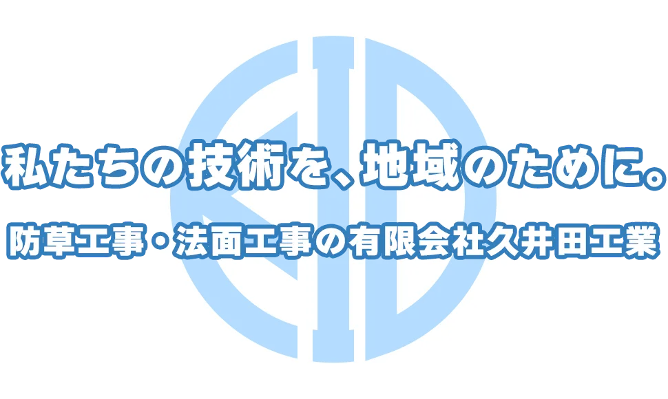 有限会社久井田工業は昭和58年の創業以来、法面工事や防草工事を通じて、岡山県津山市を中心とする県内全域の住環境を整え、守り続けている施工業者です。