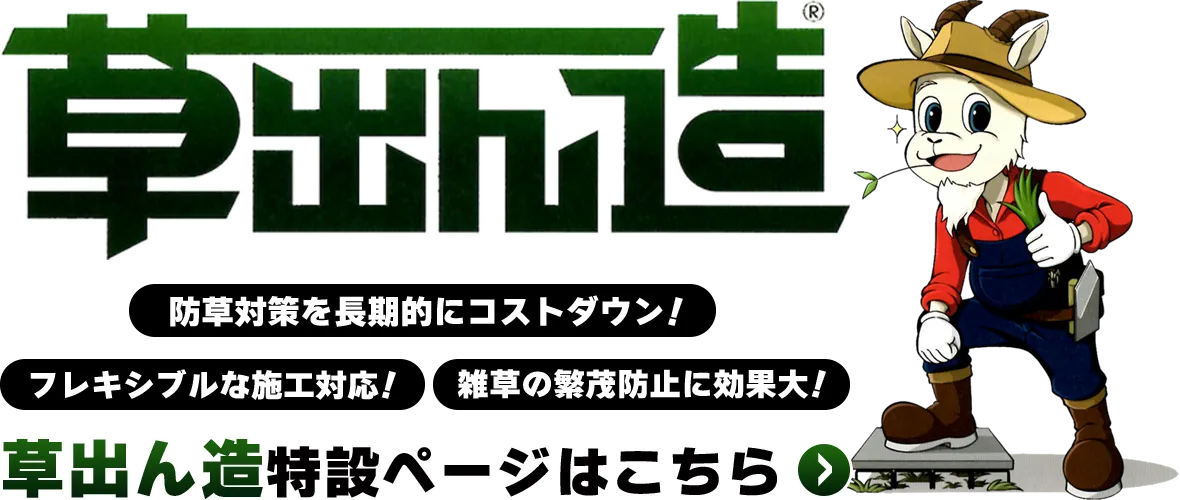 「草出ん造」は、弊社と岡山大学が共同で開発した、オリジナルの防草工法です。